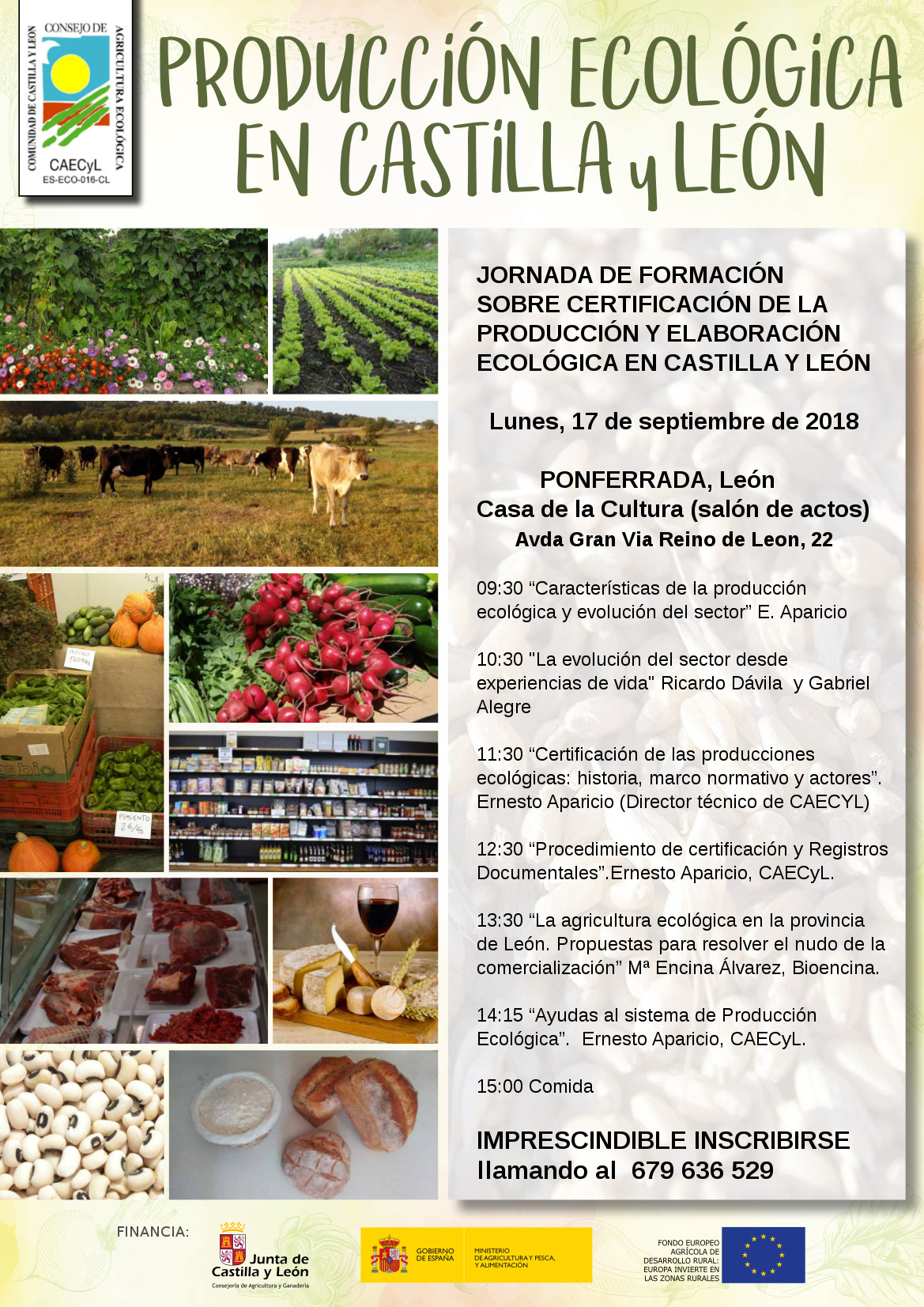 JORNADA en Ponferrada (León) el 17 de septiembre FORMACIÓN SOBRE CERTIFICACIÓN DE LA PRODUCCIÓN Y ELABORACIÓN ECOLÓGICA